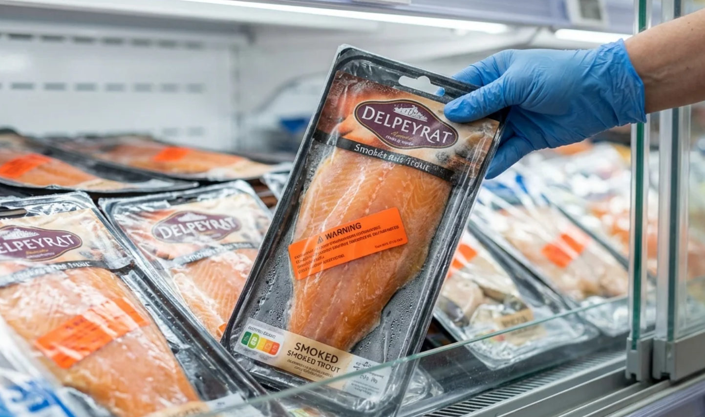 Le premier rappel vise une truite fumée « 100 % France » de la marque Delpeyrat. Conditionnée en barquette de 8 tranches pour un poids total de 220 grammes, elle est contaminée par la bactérie responsable de la listériose, une infection potentiellement grave. Le produit a été distribué depuis le 15 décembre 2025 dans de nombreux magasins Intermarché.